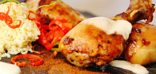 Belugalinsenauflauf mit gefülltem Hähnchen